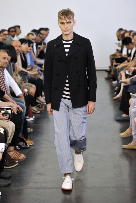 | E esse look Kenzo que eu achei muito simpático: Oxfod, barra dobrada, boina e paletó. Recomendo muitíssimo! |